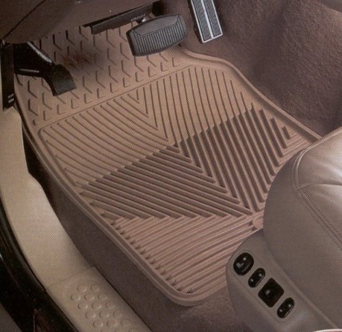 Highland All-Weather Tan Front Seat Floor Mats are designed to trap water, mud, sand, snow, dirt, and withstand even the harshest weather conditions. These durable, pliable all weather mats conform to your vehicles floor contours and will not stiffen of crack. They have a raised outer lip to keep dirt and water off your floors carpet, anti-skid spikes on the back prevent the mats from slipping. All weather floor mats are easy to install and remove with no tools required.